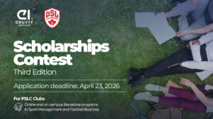 The third edition of the Johan Cruyff Institute and Premier Soccer Leagues Canada scholarship program opens its call for applications on Monday, March 2. Following two successful editions, the program will once again offer partial and full scholarships to pursue Johan Cruyff Institute academic programs during the 2026 to 2027 cycle. These include on-campus and online master’s degrees, specialized diplomas, and short courses focused on sports and professional football management.